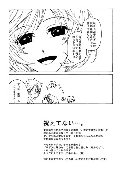 アンジェ神曲で配布した東金誕生日ペーパーより。